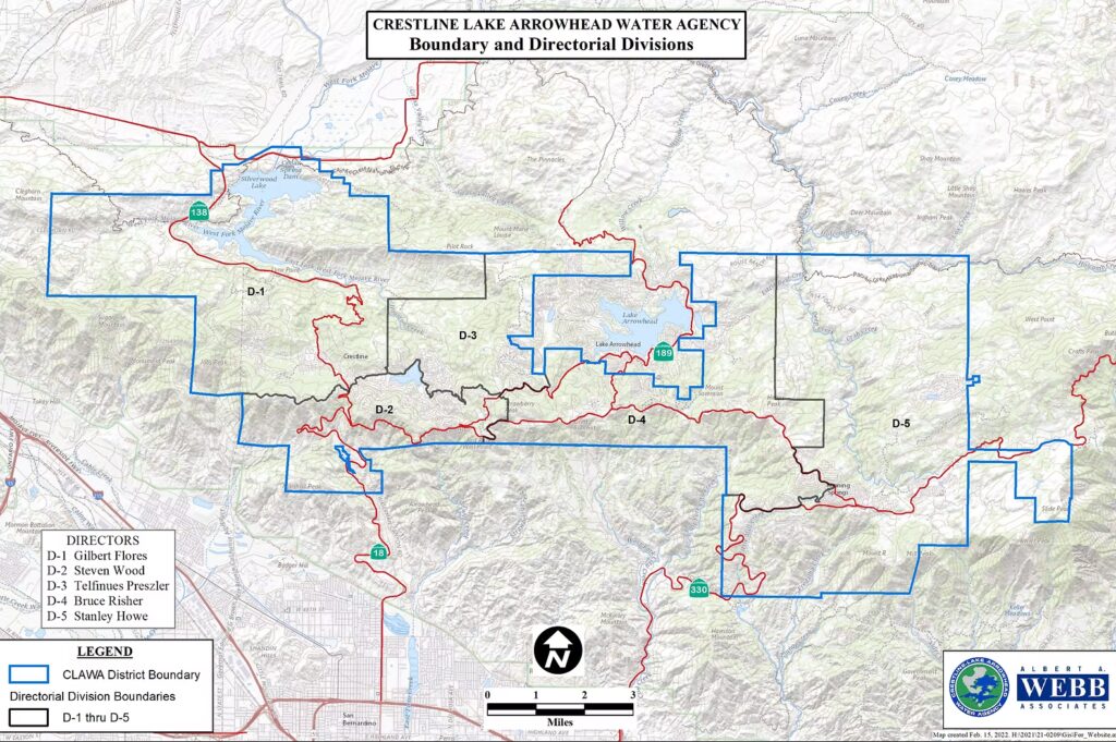 The Crestline-Lake Arrowhead Water Agency (CLAWA), a governmental public agency, was created in 1962 by the California State Legislature Act 9099a of the California Water Code to provide supplemental water across the San Bernardino Mountains.